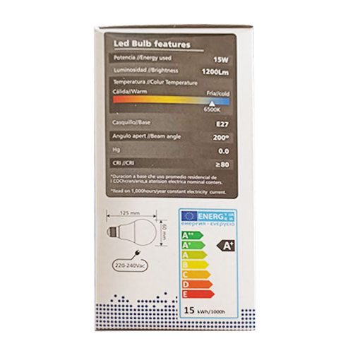 LED Bulb / Λάμπα 15W / 1200lm / 6500K – E27