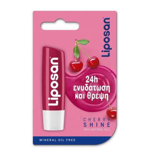 Το Liposan Fruity Shine Κεράσι ενισχύει τα χείλη με ένα απαλό κόκκινο χρώμα ώριμου κερασιού, με ιριδίζοντα σωματίδια, που αφήνει ένα απαλό, λαμπερό αποτέλεσμα.